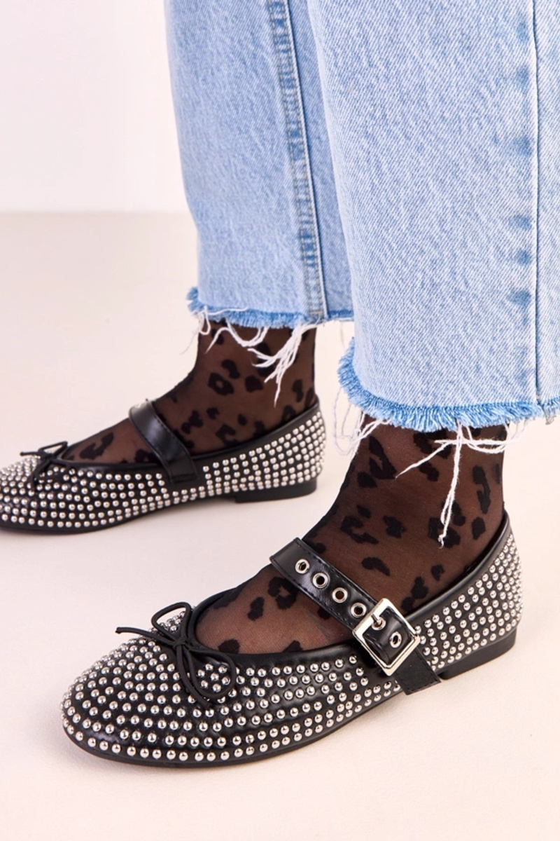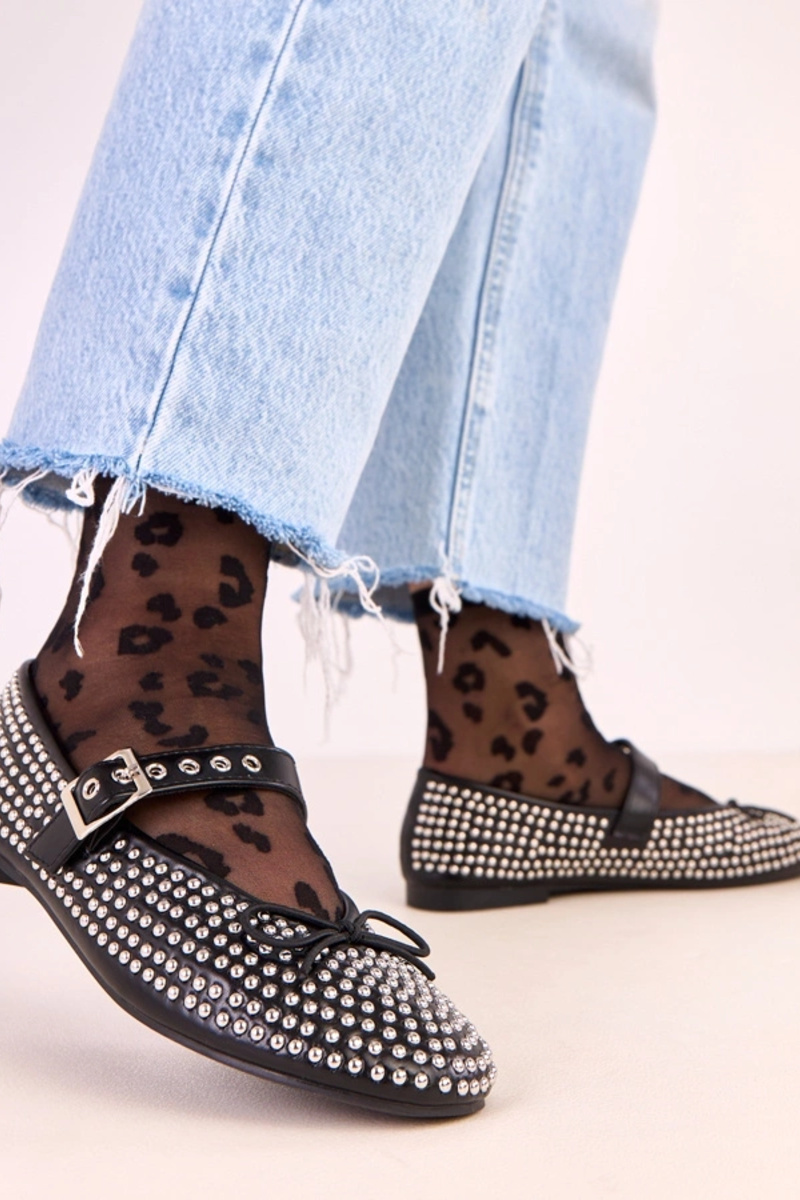 Schwarze Ballerinas Mylie, dekoriert mit Nieten und Schleife