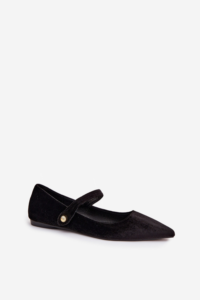 Samt Ballerinas mit Riemchen und goldfarbenen Details, schwarz Gisanne
