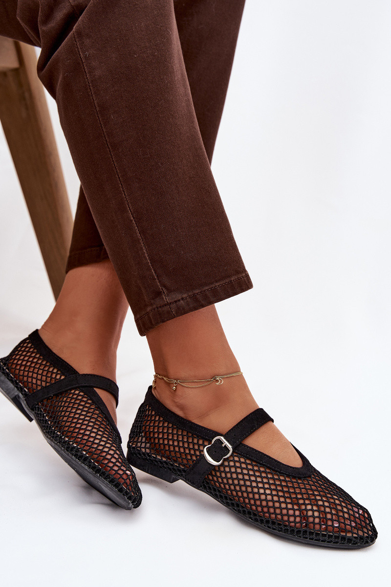 Netz Ballerinas mit Riemen schZuarze Farbe Pherina