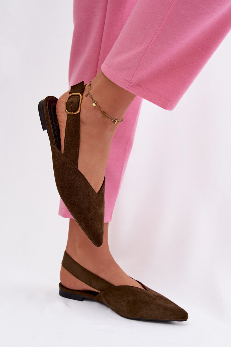 Ballerinas mit goldfarbenen Schnallen aus Kunstwildleder, grüne Farbe Palerra