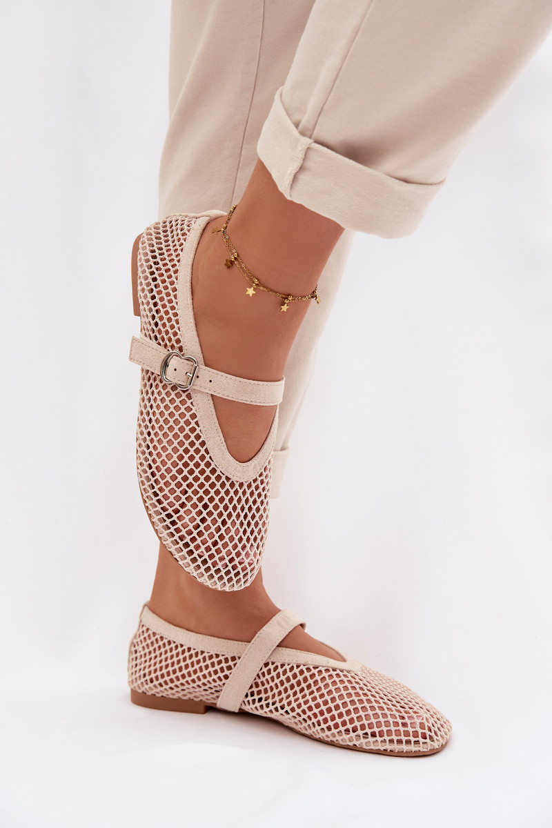 Pherina Netz-Ballerinas mit Riemen in Elfenbein