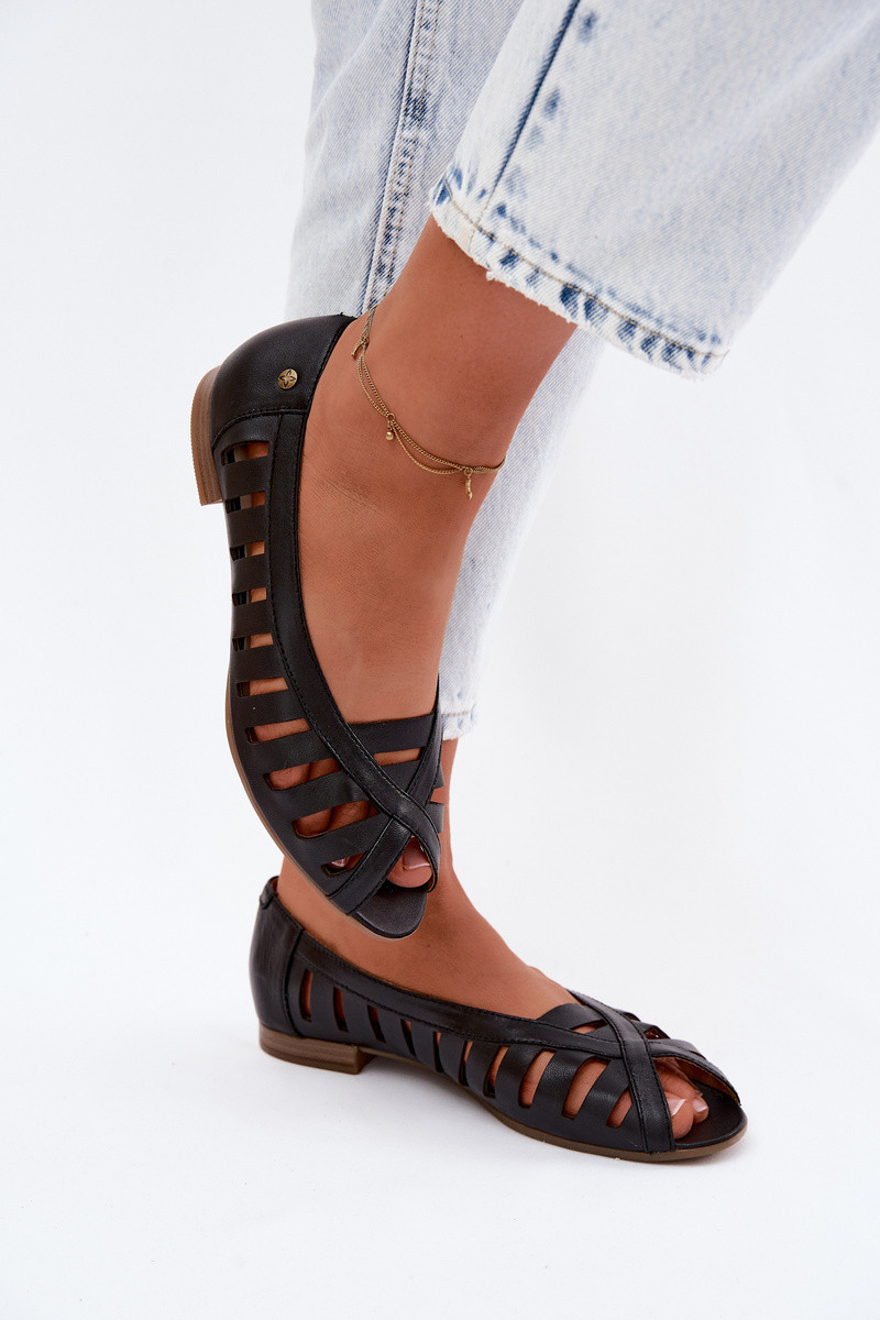 Haut Durchbrochene Ballerinas Es mussciejka P7540-01 schZuarze Farbe