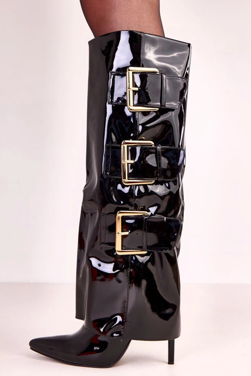 Schwarze Lack-Stiefel mit umklappbarem Schaft Karela