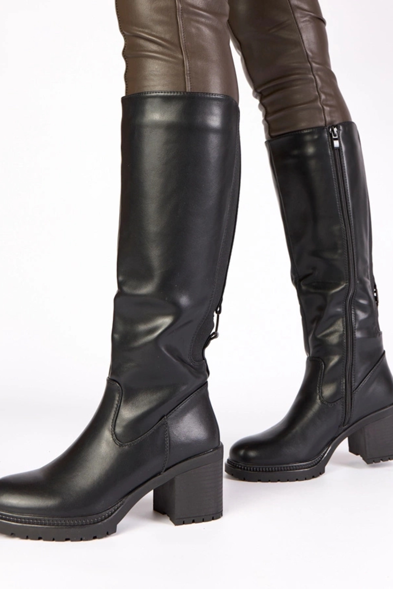 Schwarze Overknee-Stiefel auf Absatz Akija