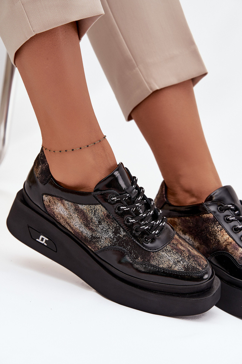 Haut Schnürschuhe Feminin mit einer Plattform Artiker 57C2042 SchZuarz und-goldene Farbe