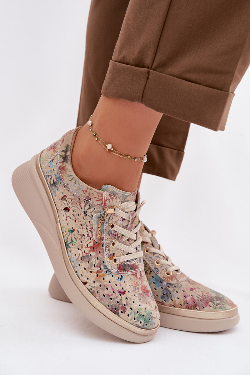 Durchbrochenes INildleder Schuhe Feminin Vinceza 79603 Beige