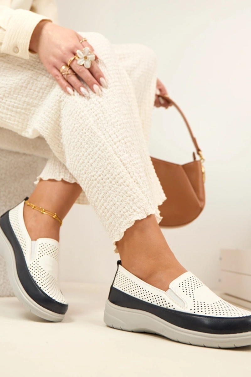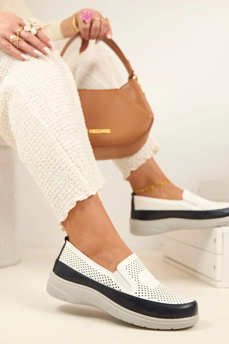 Weiße dunkelblaue durchbrochene Halbschuhe Aurelle