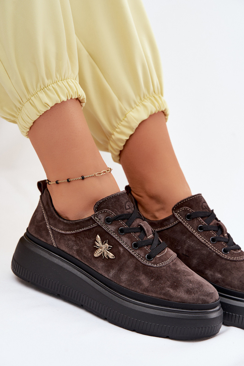 Faux-Suede Schuhe mit Plattform Vinceza 41523 schokoladenbraun
