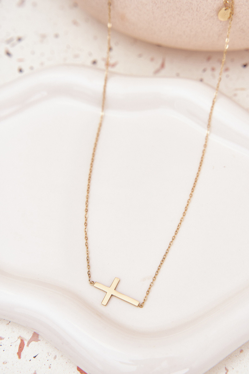 Kettchen mit Kreuz aus chirurgischem Stahl in Goldfarbe