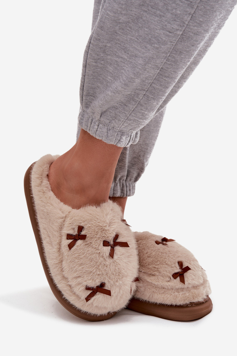 mit Pelzmantel Hausschuhe Feminin mit Bändern Beige Saviera