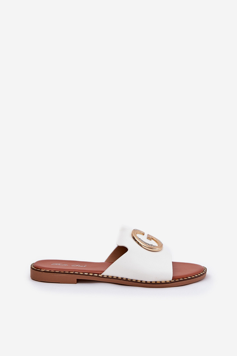 Kunstleder Pantoletten mit dekorativen Elementen in Weiß Frelie