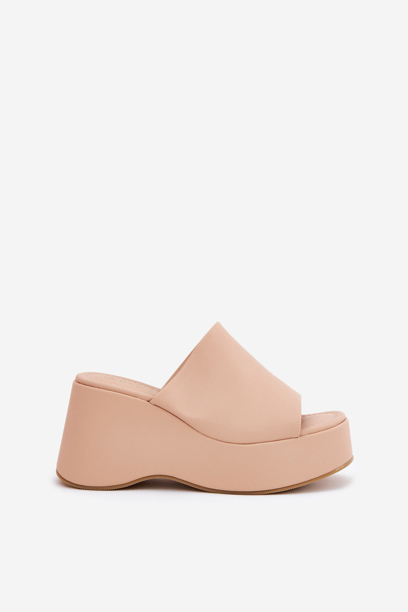 Damen-Pantoletten aus Kunstleder mit Plateau in Sandfarbe