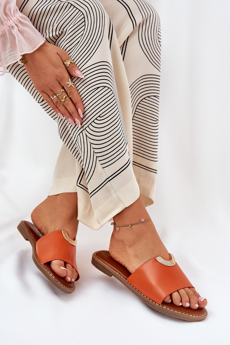 Damenhausschuhe Eko Haut Mit Dekorationeni Detalami orange Farbe Mevith