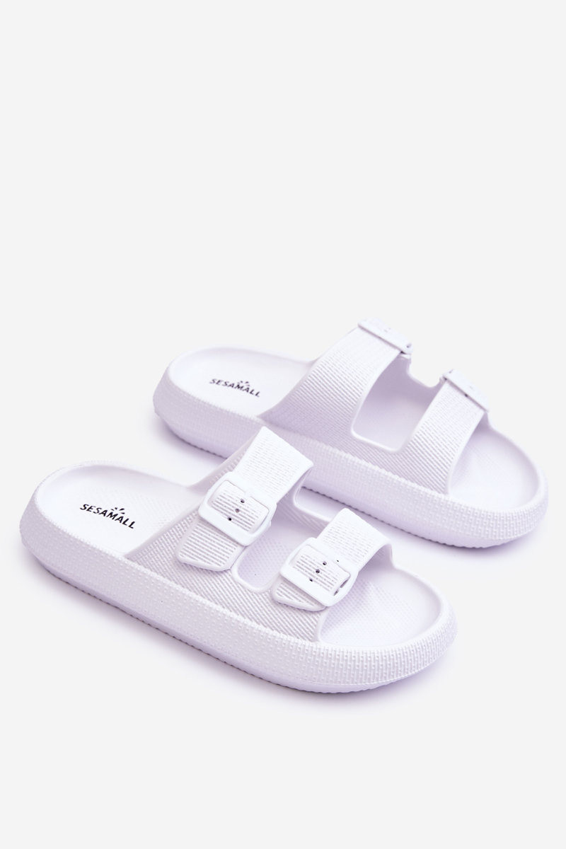 Damen Pantoletten mit Schaumstoff und Riemchen in Weiß Sharmen