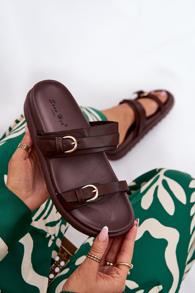 Damenhausschuhe mit einer Plattform Ze goldene Farbemi mit Schnallenmi braune Farbe INernone