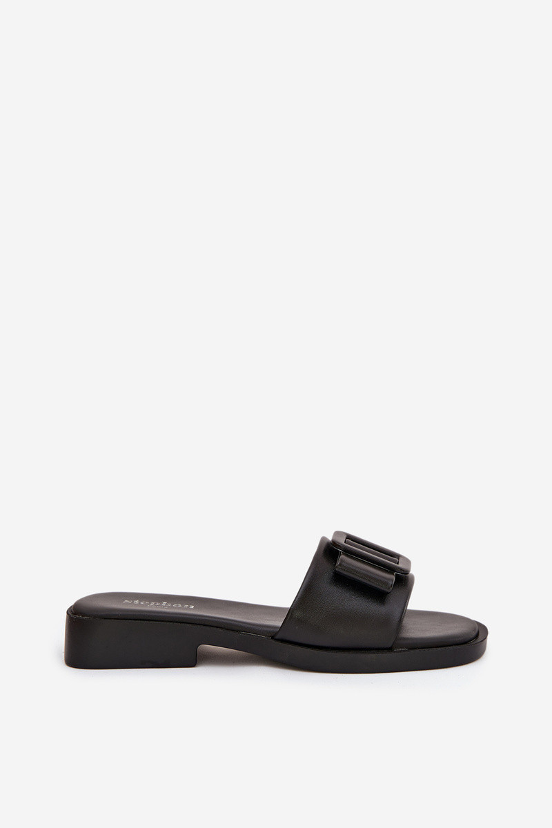 Damenpantoletten mit breiten Absätzen und Schnallen in schwarzer Farbe „Melivra"