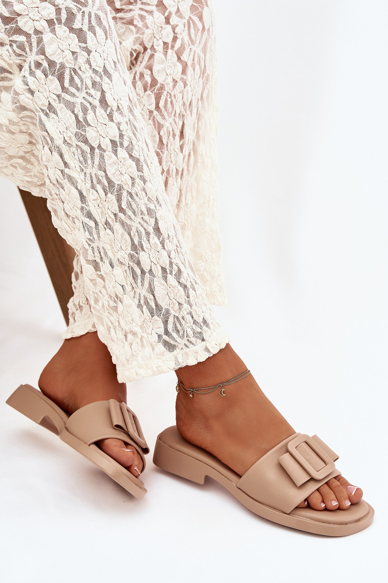 Damenpantoletten mit breiten Absätzen und Schnallen in sandfarbener Farbe „Melivra"
