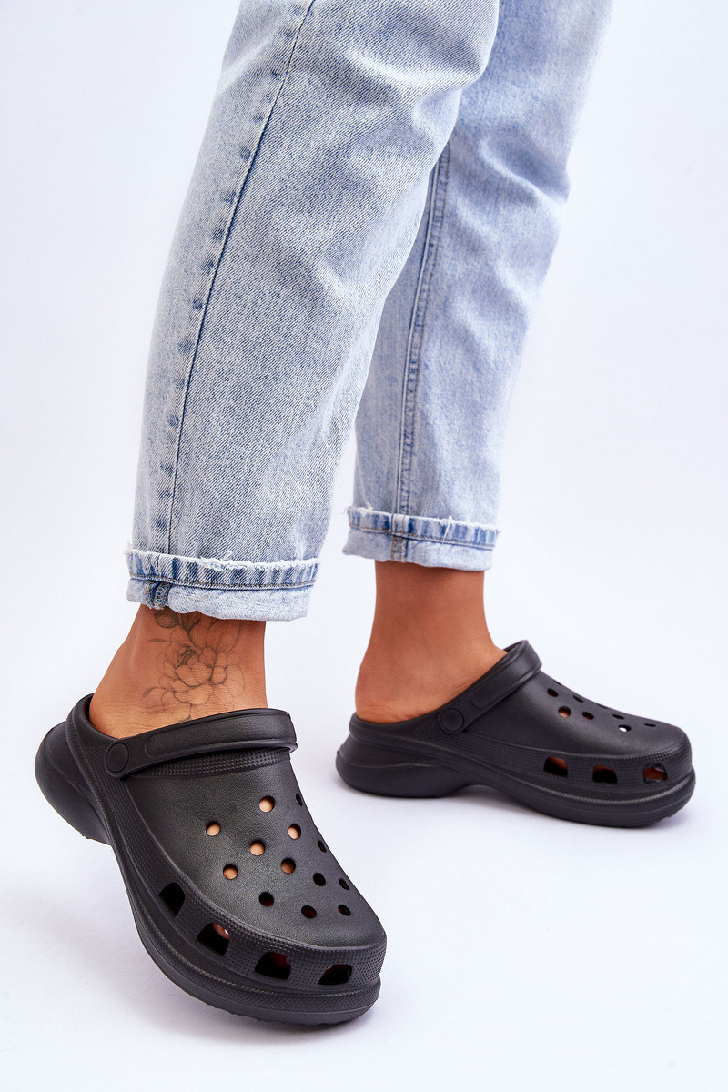 Crocs Schaumstoff-Pantoletten mit modischen massiven Sohlen in Schwarz Katniss