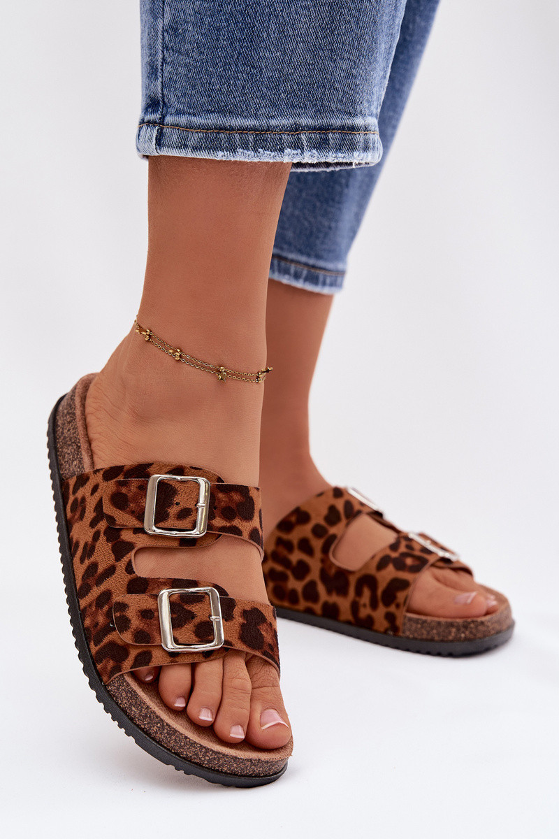 Damenhausschuhe Oliena mit Schnallen und Leopardenfell-Muster