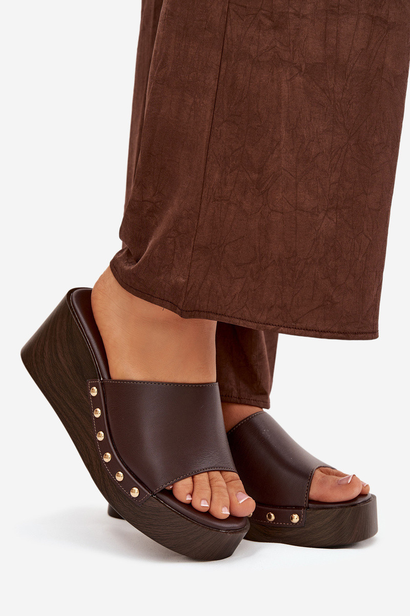 Damenflip-Flops mit Plattform und goldenen Nieten in Schokoladenfarbe Arionne