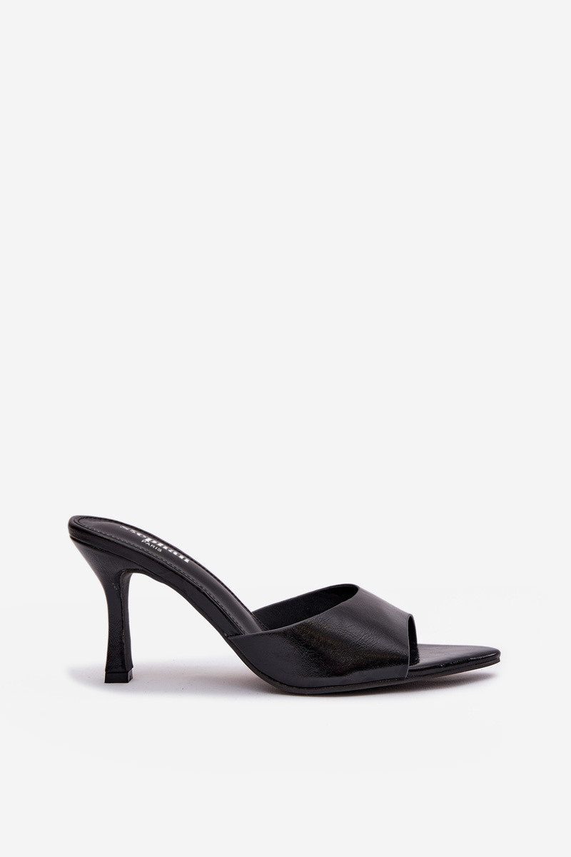 Damen schwarze Lackpantoletten mit Absatz Lirissa