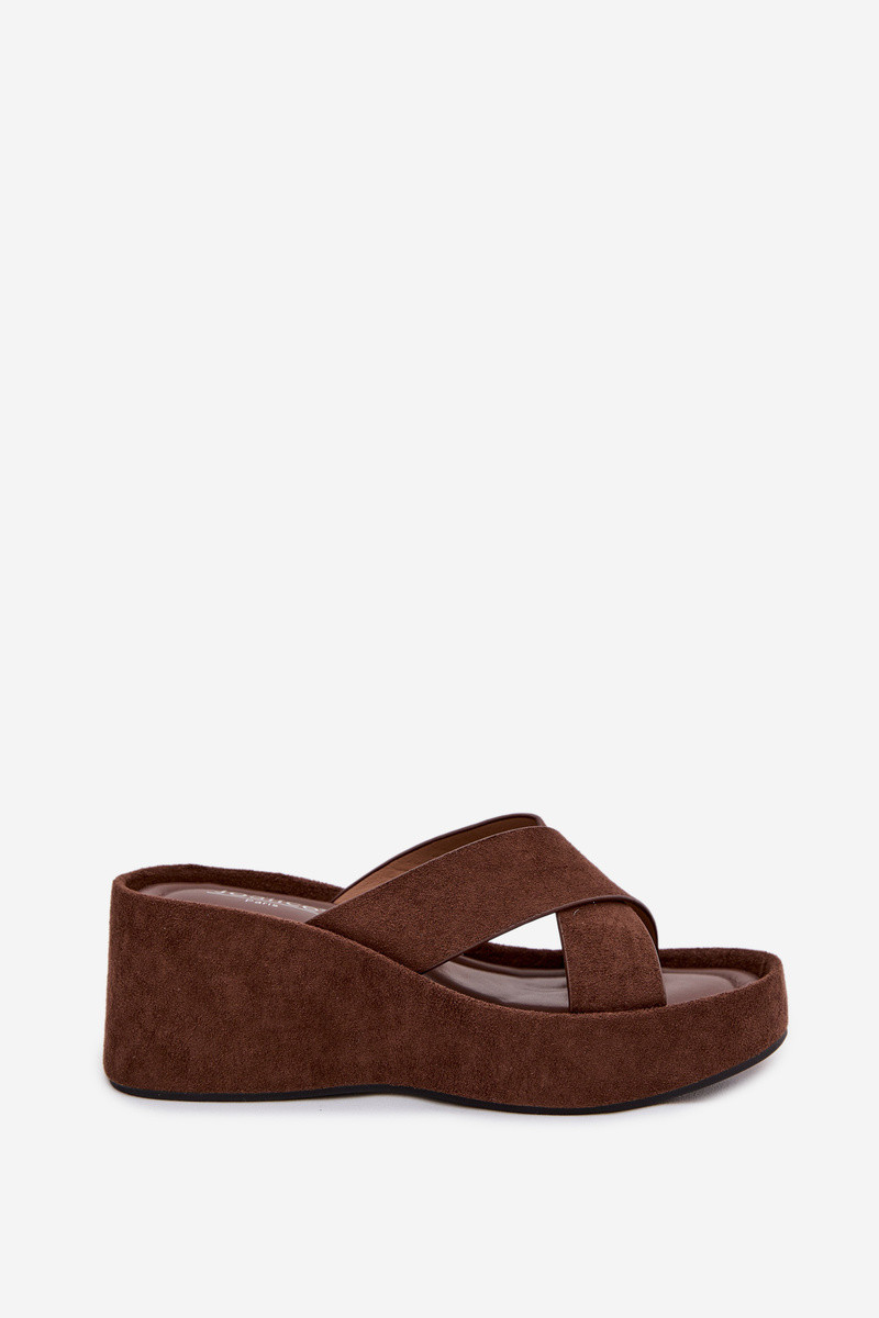Schokoladenfarbene Damen-Pantoletten auf Plateausohle aus Kunstwildleder „Calorine"