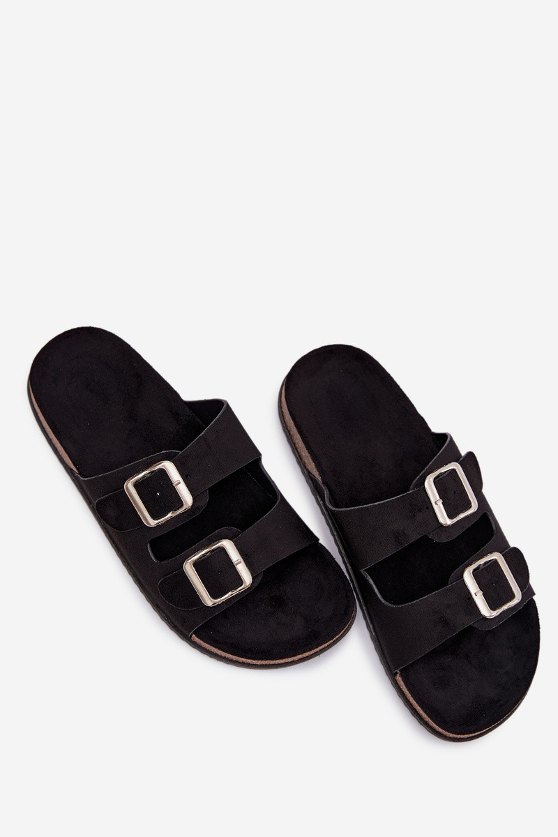 Damen schwarze Pantoletten mit Schnallen Oliena