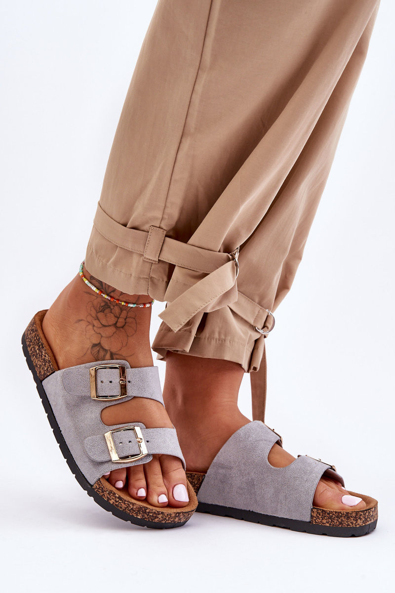 Damenhausschuhe Auf einer Korksohle graue Farbe Cortina