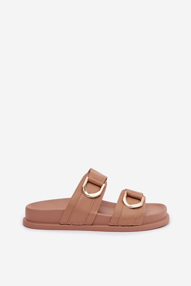 Damen Pantoffeln aus Kunstleder mit Riemchen in Sand „Rosinessa"