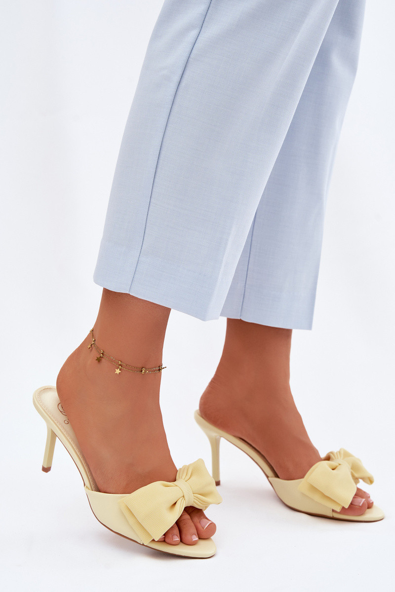 Damen Pantoletten mit feinen Absätzen und Schleifen sandfarben Jelessa