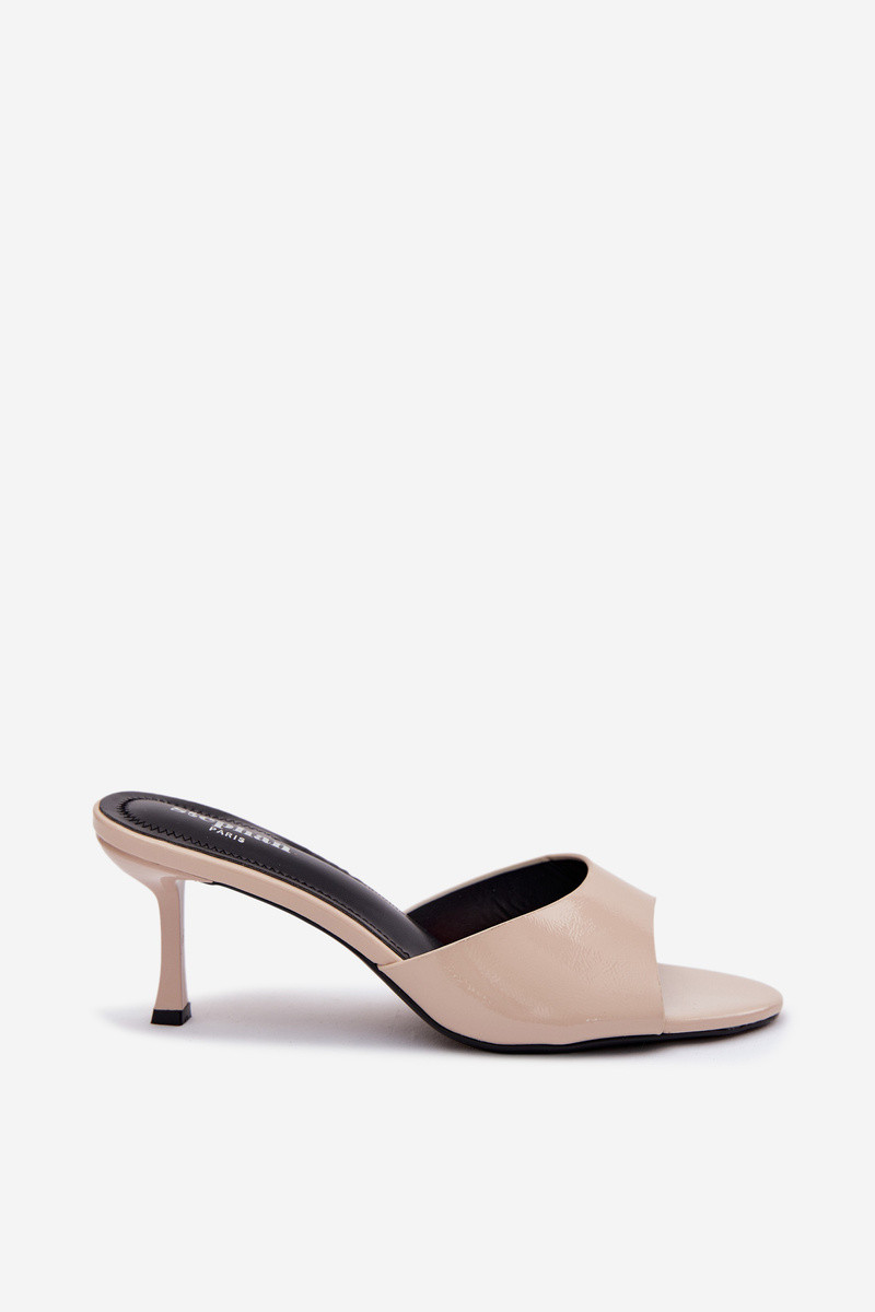 Lackierte Kunstleder Pantoletten mit dünnen Absätzen in Sand Melissea