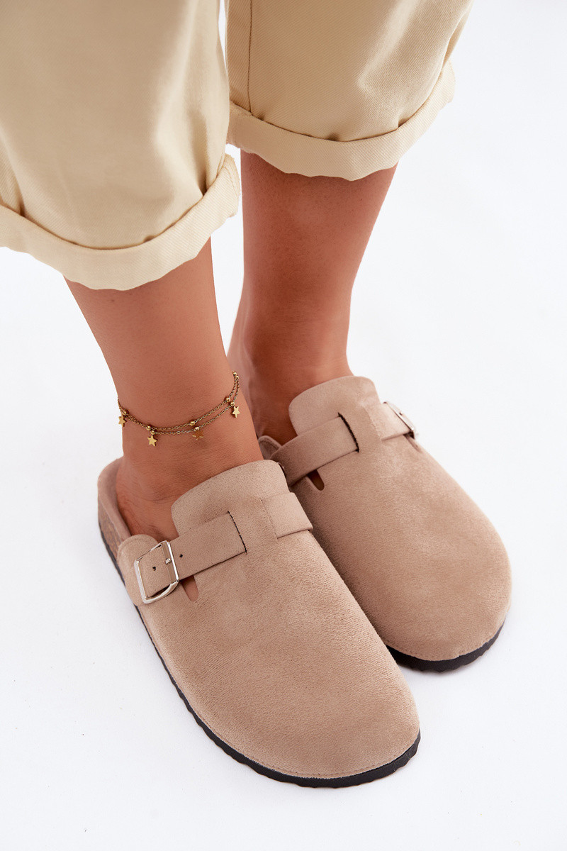 Sandfarbene Slipper mit Schnallen Lacey