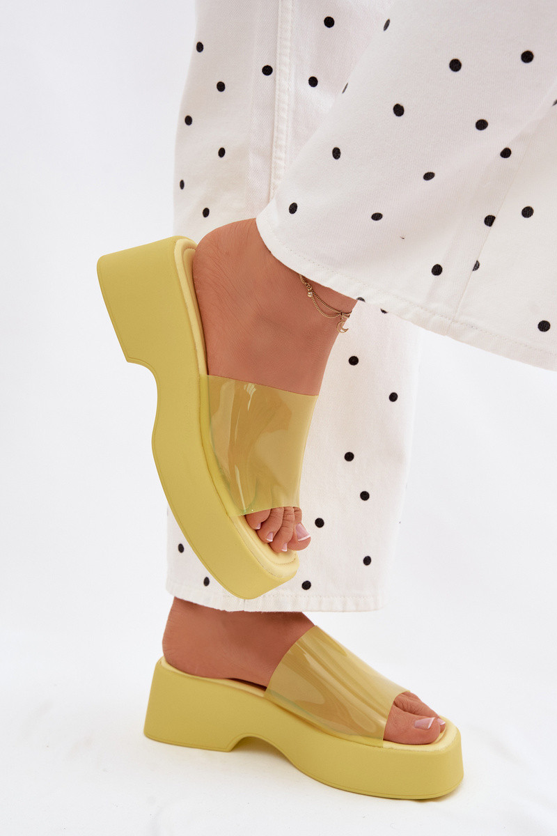 Damenhausschuhe mit einer PlattformTransparentnym Streifenem gelbe Farbe Selestia