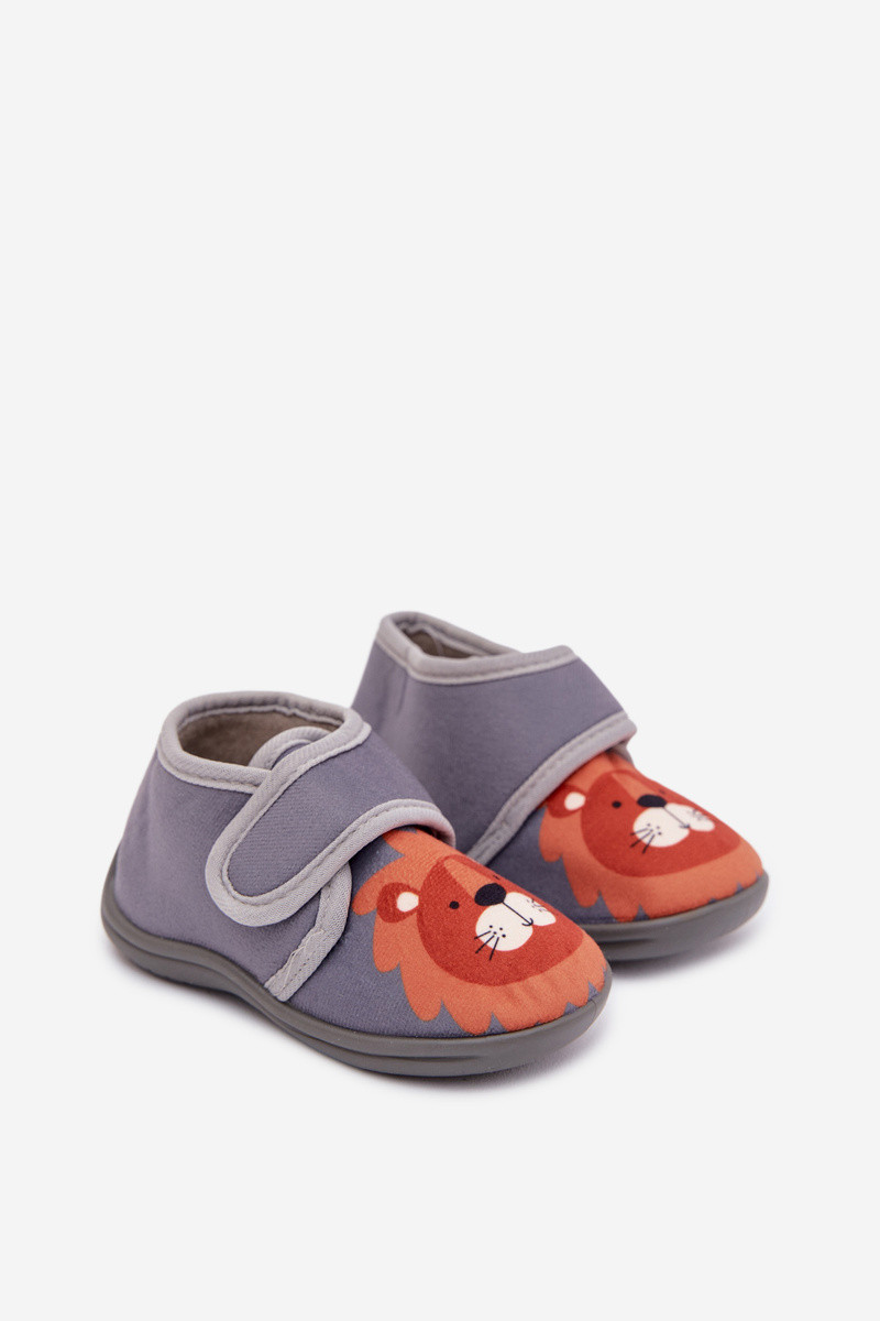 Kinder graue Hausschuhe mit Klettverschluss „Katline"