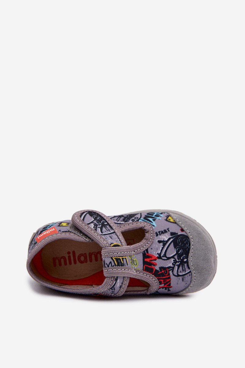 Milami Slipper für Kinder mit Klettverschluss in grau Jasimrra