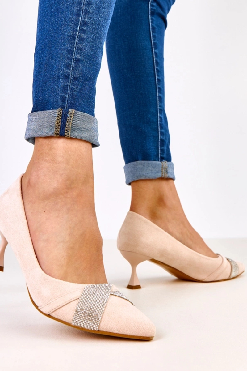 Beige High Heels mit niedrigem Absatz und Zirkonia, Tajlana