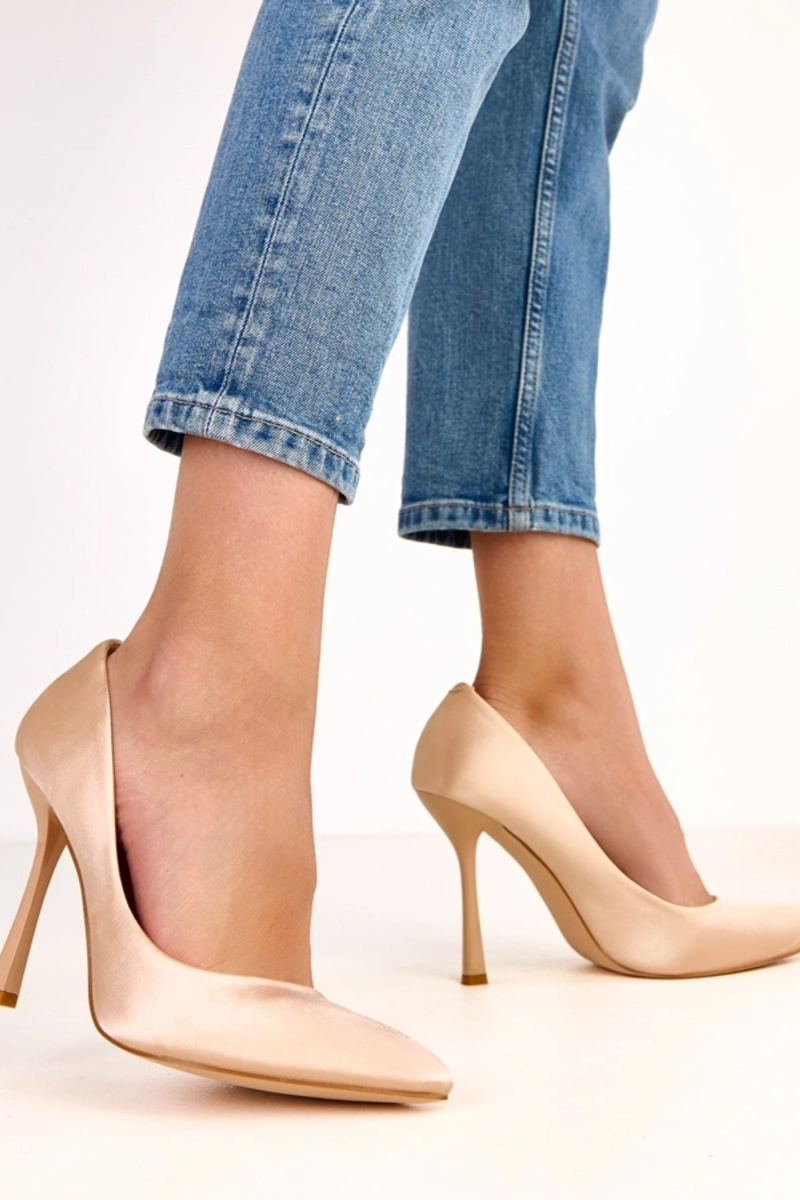Sandfarbene Pumps mit satinierter Verzierung Cindy