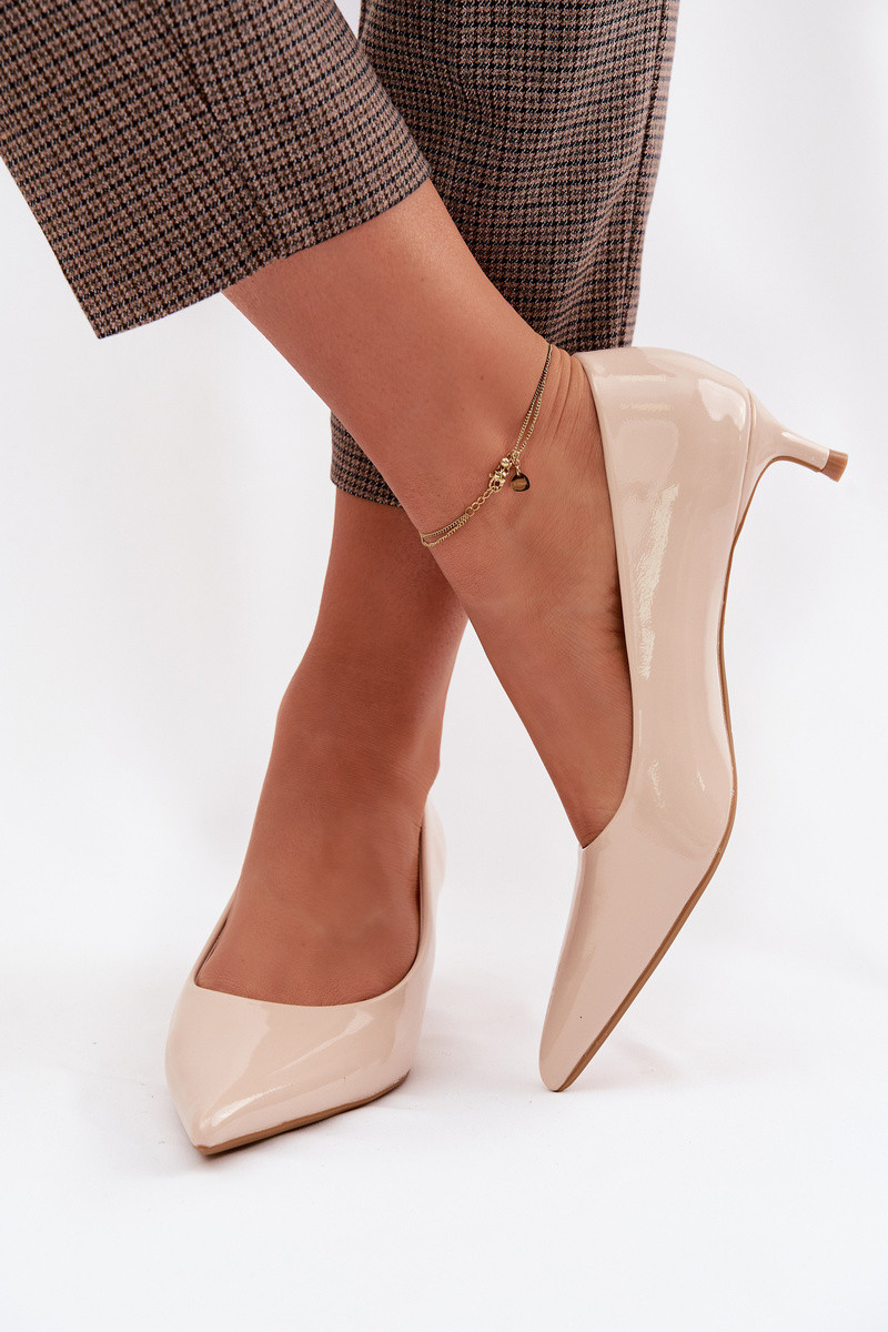 mit Lackeffekt Schuhe Auf niedrigem Absatz Beige Girela