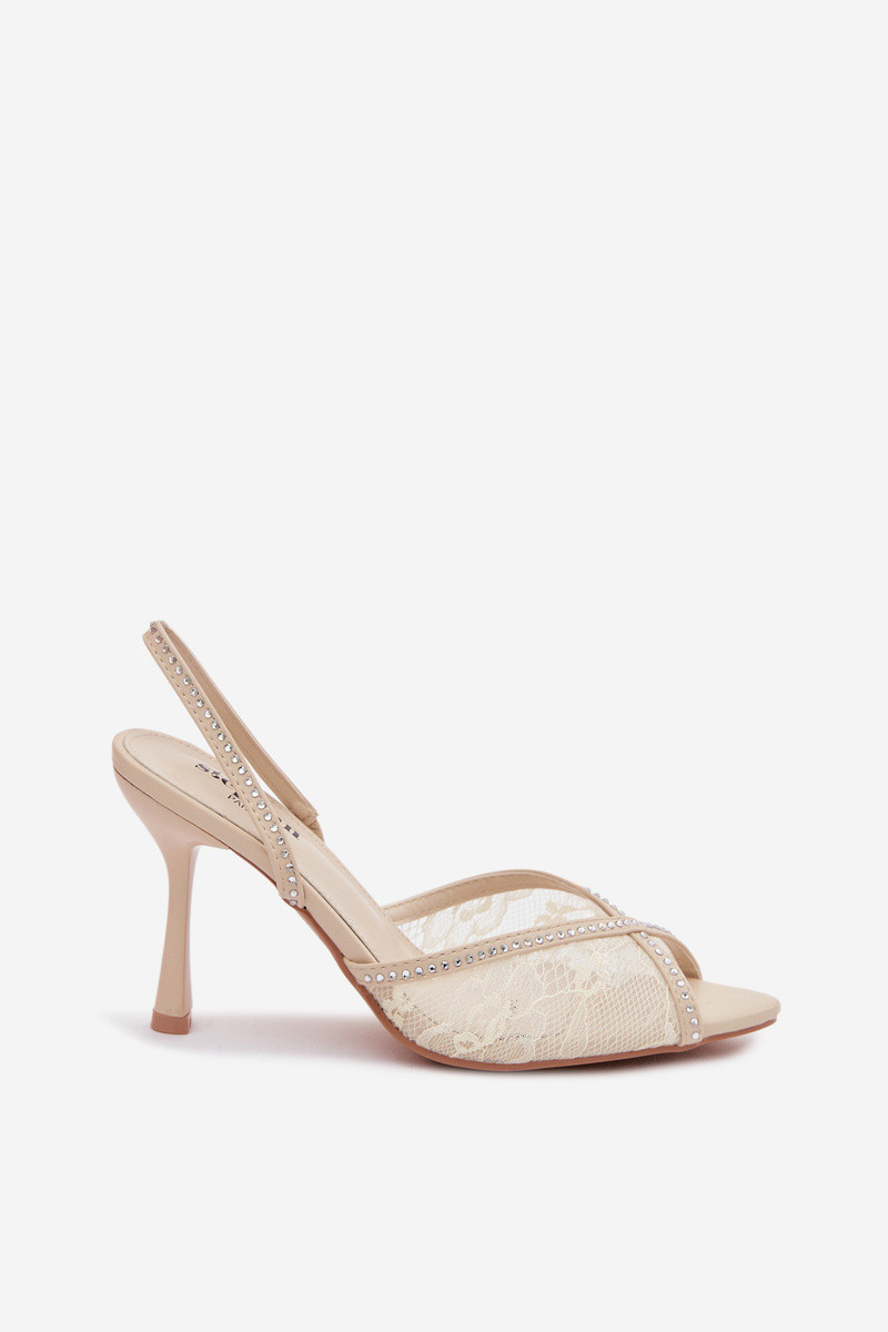 Damensandalen mit dünnen Absätzen mit Spitze I Zdobieniem Beige Melivelle
