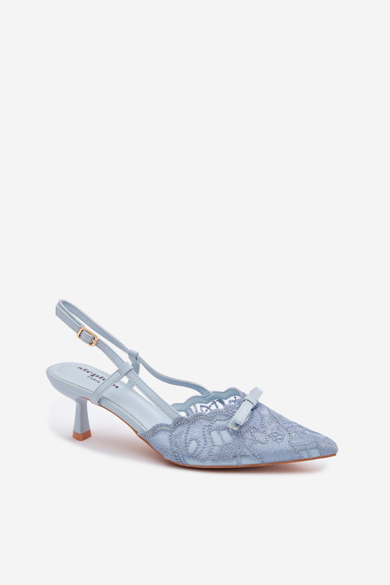 Blaue Schnürsandalen mit Schleifen am Absatz Tai turiribelle