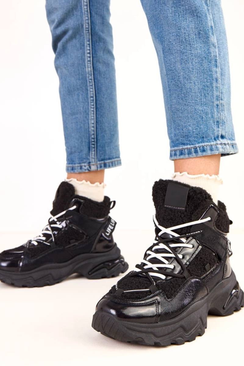 Schwarze Sportschuhe mit Schnürsenkeln und Fell Perry