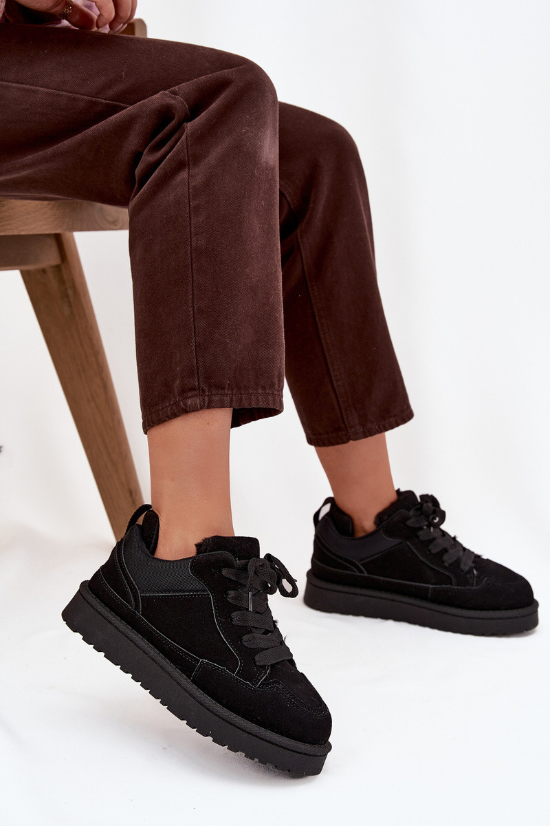 Schwarze warme Damen Sneakers mit Fellfutter Cyrissa