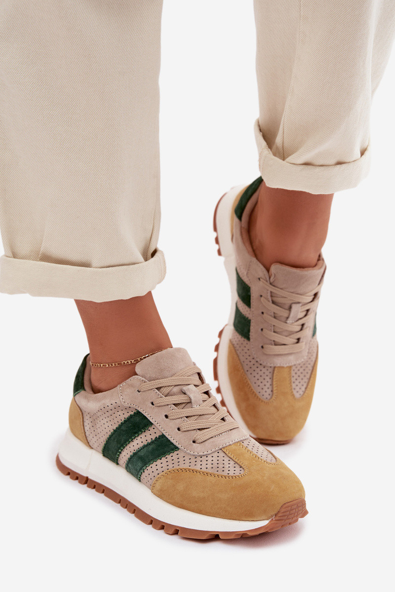 Damen-Schuhe im Sneaker-Stil aus natürlichem Wildleder in Sand-Gelb