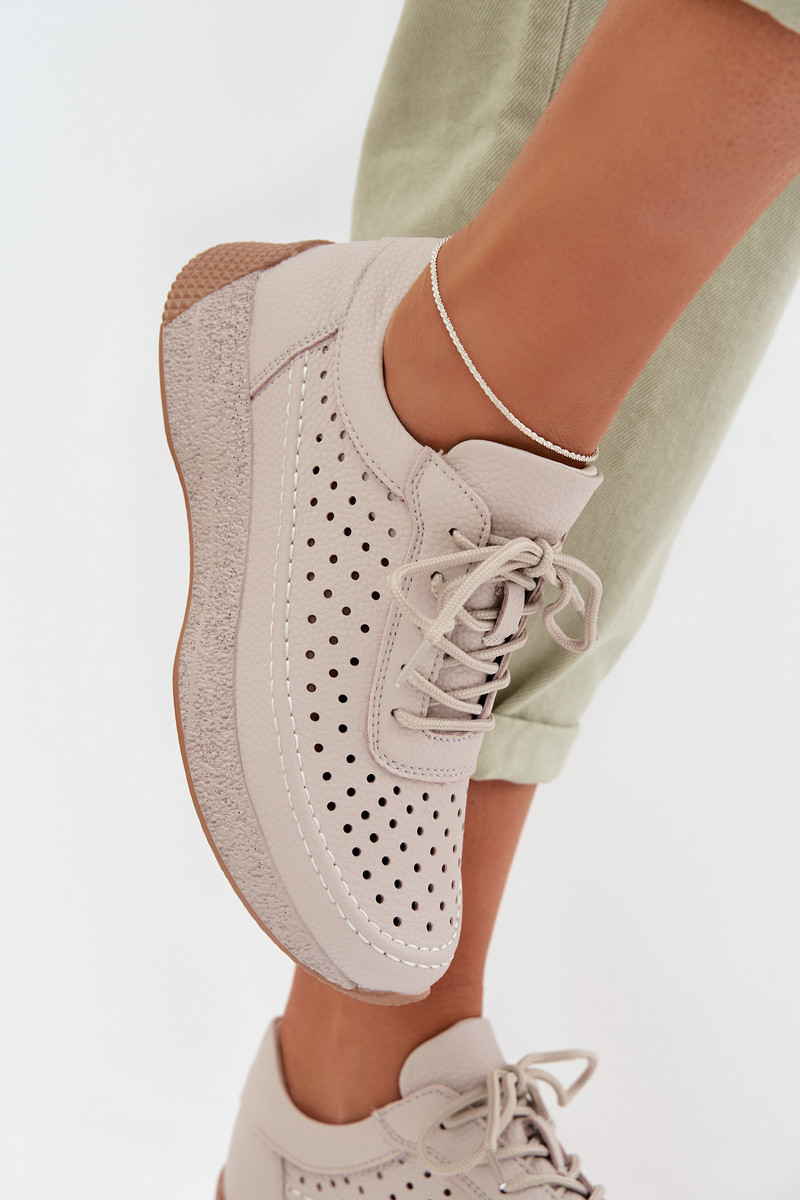 Leder Damen Sneakers mit Ażurowelementen Sergio Leone SP-013 in grau