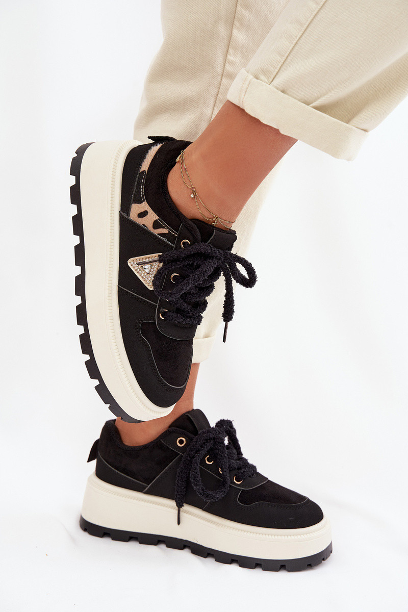 Sneakers Stilvollllschuhe Feminin mit einer Plattform schZuarze Farbe Florinda