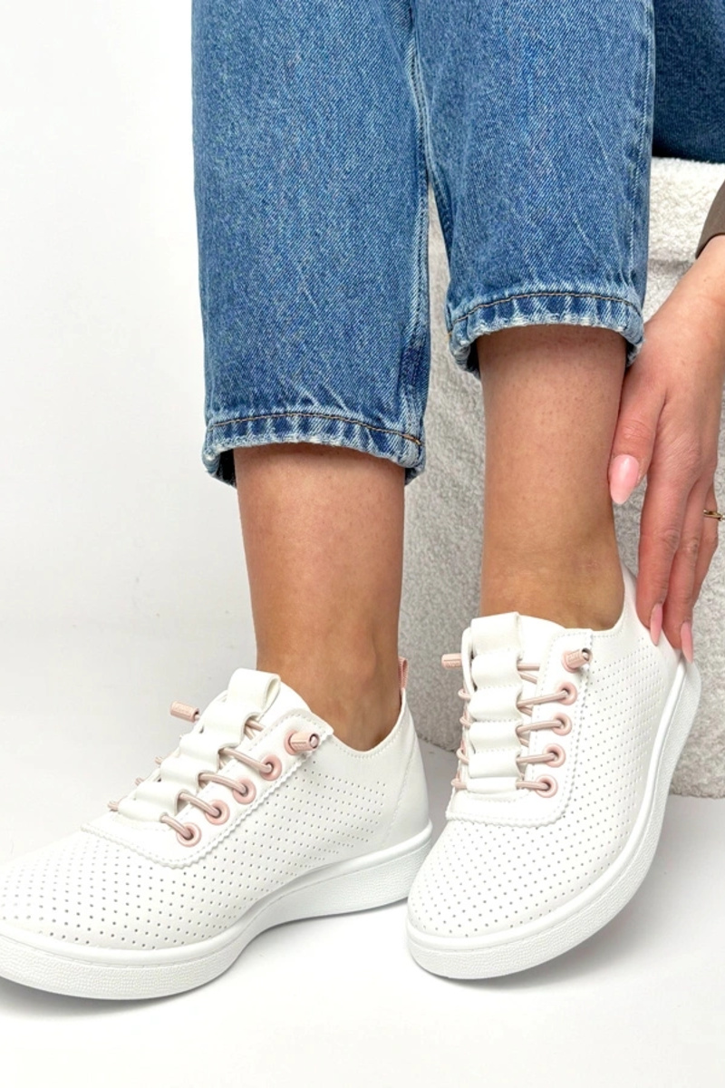 Weiße einlegbare perforierte Sneaker Adèle