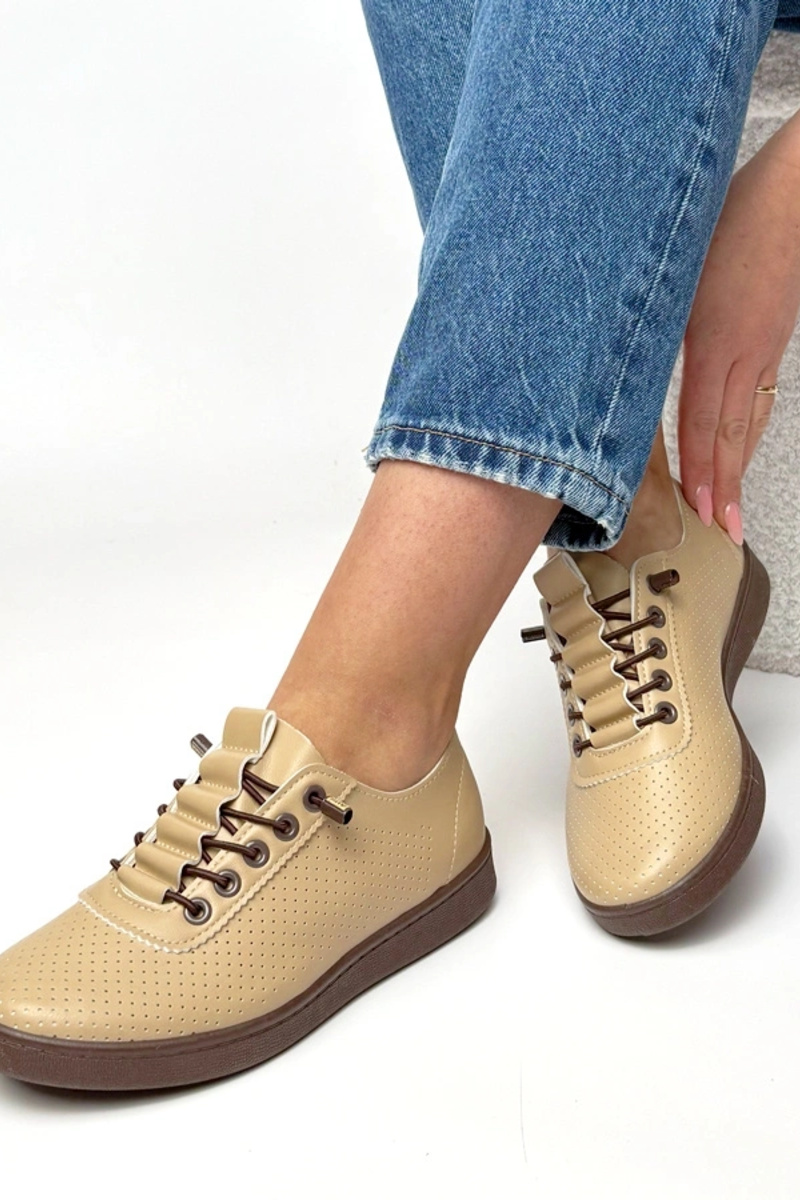 Sandfarbene einlegbare perforierte Sneaker Adèle
