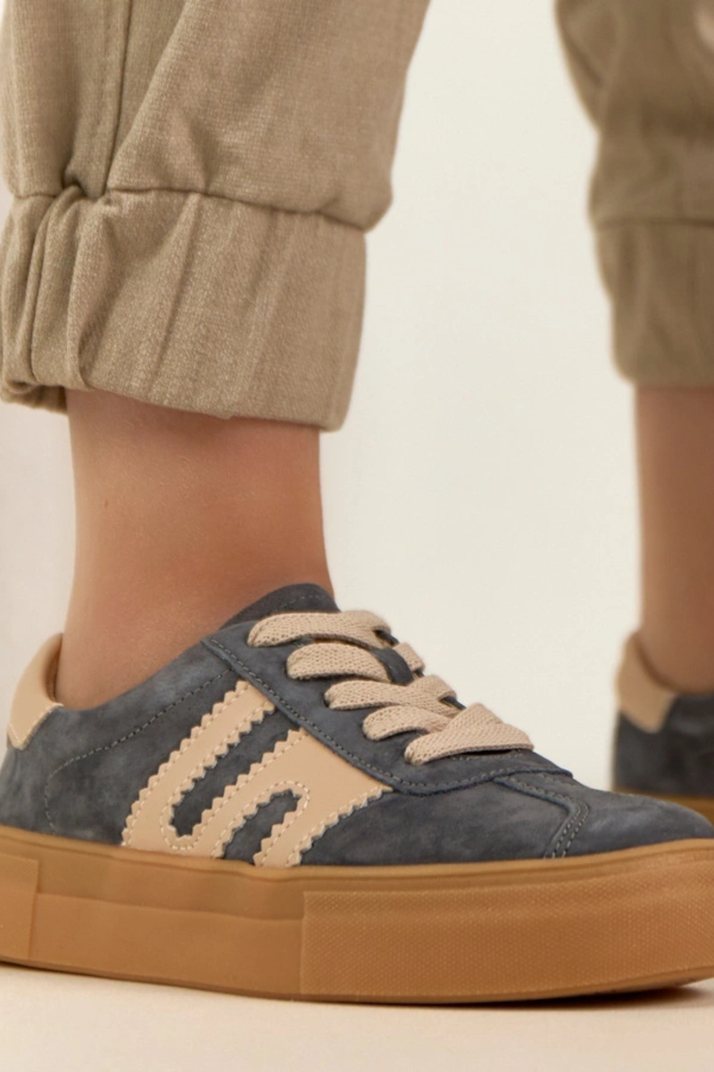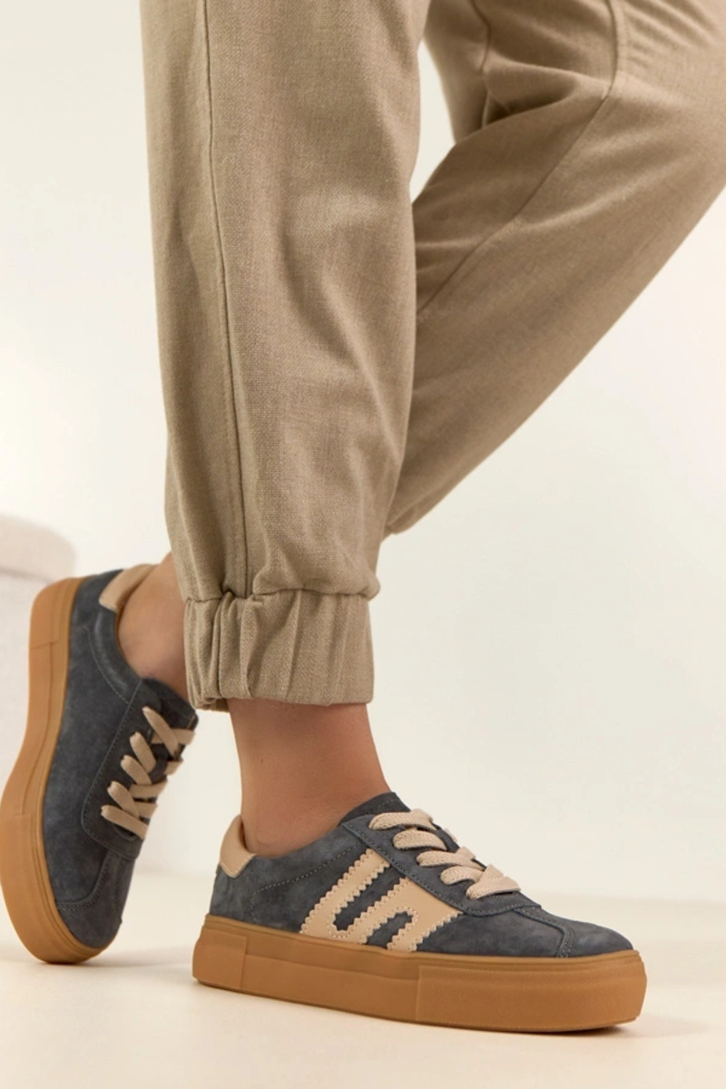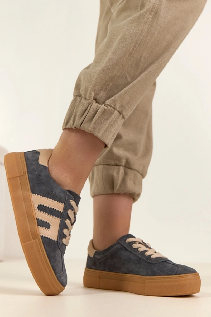 Graue Leder-Sportschuhe mit Plattform Filippo
