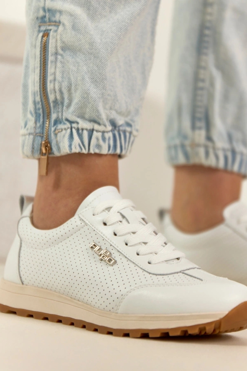 Weiße perforierte Leder-Sneaker Filippo