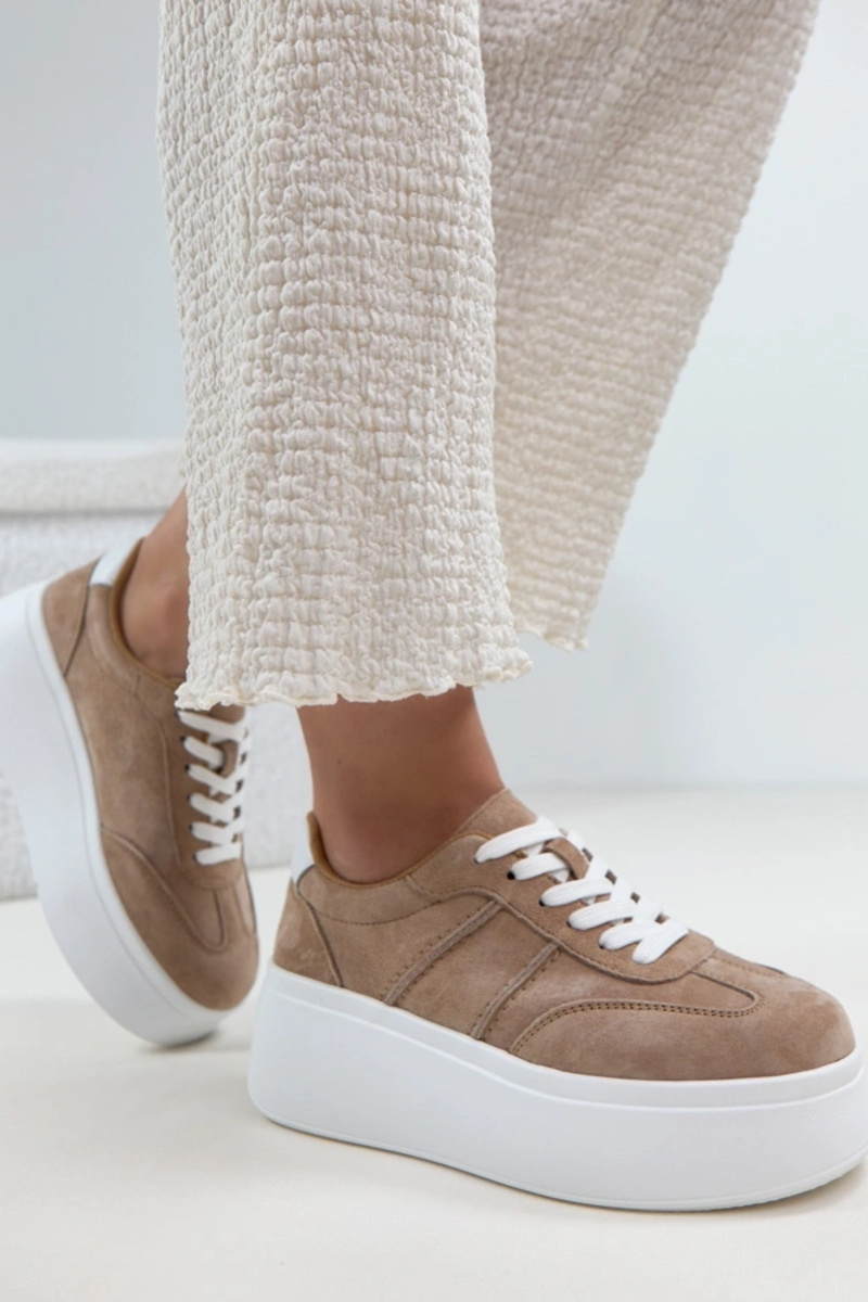 Beige Leder-Schuhe mit Plateau Cambell